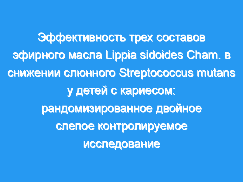 эфирное масло (LSO) в снижении слюнного Streptococcus mutans в дети с кариесом.