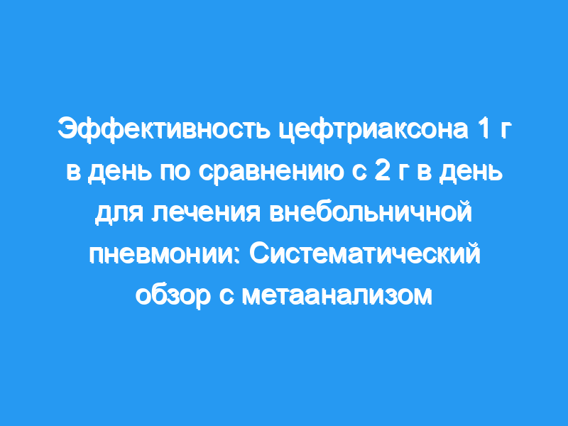 Цефтриаксон был рекомендован в качестве средства первой линии для лечения различных инфекций, однако в рандомизированных клинических исследованиях не было единого мнения о дозах при пневмонии. Сравнить эффективность цефтриаксона в дозе 1 г в день с другими режимами дозирования цефтриаксона при внебольничной пневмонии. Охватываемая область: Мы провели систематический обзор и метаанализ на PubMed, Web of Science, Scopus и LILACS. Были включены рандомизированные контролируемые исследования цефтриаксона при внебольничной пневмонии. Результаты включали клиническое излечение у пациентов с измененным намерением к лечению, поддающихся клинической и микробиологической оценке. Мнение эксперта: Дозы цефтриаксона в 1 г в день так же безопасны и эффективны, как и другие схемы приема антибиотиков при внебольничной пневмонии. Двадцать четыре статьи соответствовали критериям включения. В двенадцати исследованиях оценивались режимы приема цефтриаксона в дозе 2 г в день, а в 12 исследованиях оценивался цефтриаксон в дозе 1 г в день. Отношение шансов клинического излечения у пациентов с измененным намерением к лечению, получавших либо цефтриаксон (4666 пациентов), либо препарат сравнения (4411 пациентов), составило 0,98 (95% ДИ [0,82-1,17]). Схемы сравнения показали сходную эффективность с режимами приема цефтриаксона по 1 г в день с отношением шансов 1,03 (95% ДИ [0,88-1,20]). Дозы, превышающие 1 г цефтриаксона в день, не приводили к улучшению клинических исходов у пациентов с внебольничной пневмонией (ОР 1,02, 95% ДИ [0,91-1,14]).