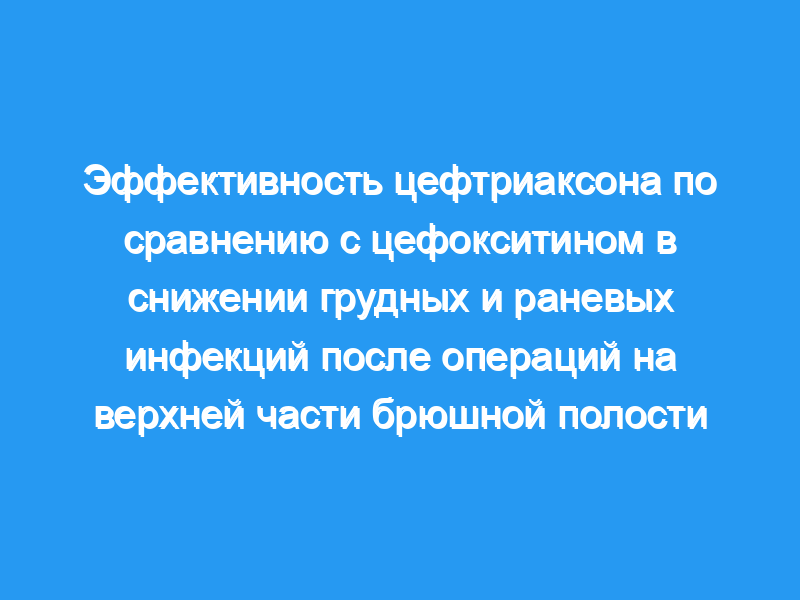 Было отмечено значительное снижение (19% против 42%, P <, 0,05) осложнений со стороны грудной клетки и раневой инфекции (0% против 8%, P <, 0,05) в группе цефтриаксона по сравнению с группой цефокситина.