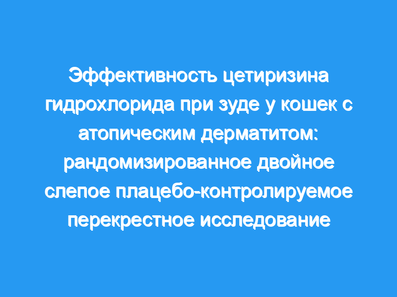 Для лечения кошачьего атопического дерматита использовались различные антигистаминные препараты, о пользе которых сообщалось по-разному. На сегодняшний день не было проведено рандомизированных двойных слепых плацебо-контролируемых перекрестных клинических испытаний по применению этого класса препаратов у кошек. Гипотеза/цели: Оценить клиническую эффективность цетиризина гидрохлорида для контроля зуда и дерматита у кошек с диагнозом атопический дерматит.