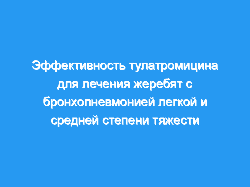 Имеются противоречивые данные относительно эффективности тулатромицина для лечения жеребят с бронхопневмонией. Гипотезы: Тулатромицин эффективен для лечения бронхопневмонии у жеребят и не уступает комбинации азитромицина и рифампицина. Животные: всего 240 жеребят на ферме, эндемичной по инфекциям, вызванным Rhodococcus equi.