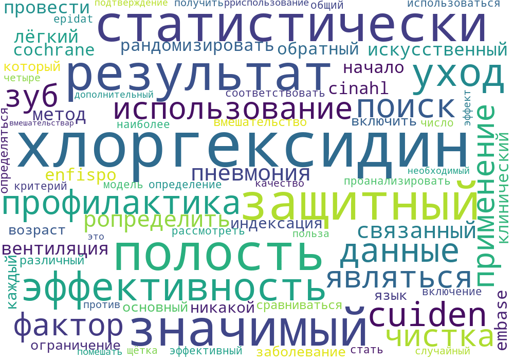 Определить эффективность ухода за полостью рта в профилактике пневмонии, связанной с искусственной вентиляцией легких (ИВЛ). Метод: Был проведен поиск рандомизированных клинических исследований (РКИ) в CINAHL, Cuiden Plus, Pub Med, EMBASE, ENFISPO, Cochrane, Cuiden, DARE, EBE, JBI и обратный поиск с начала индексации каждой базы данных до 3 мая 2010 года. Не было никаких ограничений по языку, возрасту, полу или основному заболеванию. Были включены РКИ, в которых сравнивался уход за полостью рта и определялась их эффективность в профилактике ВАП. Различные вмешательства были проанализированы для определения наиболее эффективных и защитных. Для анализа данных использовался Epidat 3.1. Из общего числа 858 рассмотренных статей только 14 соответствовали критериям включения.