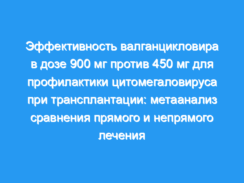 были оценены исследования, оценивающие валганцикловир в дозах 900 мг и 450 мг ежедневно по сравнению с контрольной группой. Прямые сравнения проводились с помощью моделей случайных эффектов, а косвенные — с помощью метода Бухера.