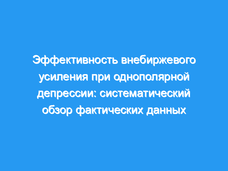 Лечение униполярной депрессии доступными в настоящее время антидепрессантами по-прежнему остается неудовлетворительным.