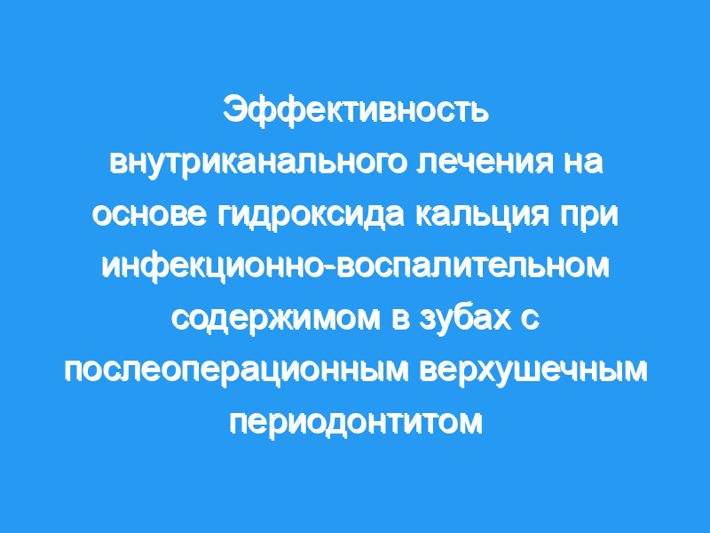 Внутриканальные препараты на основе гидроксида кальция оказали положительное влияние на сокращение микробов за счет снижения уровня PICs и MMPs. Оба вспомогательных химических вещества (т.е. 2% CHX и 6% NaOCl) оказывали сходные эффекты, когда гидроксид кальция использовался в качестве внутриканального лекарственного средства. Клиническая значимость: Зубы с неудачным лечением корневых каналов и апикальным периодонтитом, и, следовательно, с высоким уровнем бактерий, PIC и MMP, могут иметь лучший прогноз после 30 дней ICM на основе гидроксида кальция.
