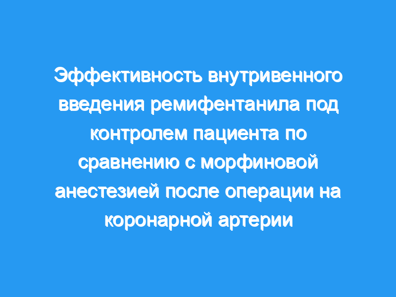 Единственное учреждение, университетская больница. Участник: Шестьдесят кардиохирургических пациентов, перенесших операцию первичного аортокоронарного шунтирования (АКШ). Вмешательства: После операции пациенты были распределены на 1 из 2 групп. В первой группе (группа R, n = 30) был запрограммирован следующий протокол внутривенного введения PCA: инфузия ремифентанила 0,05 мкг/кг/мин, болюсное введение 0,25 мкг/кг и время локаута 5 минут. Во второй группе (группа M, n = 30) протокол внутривенного введения PCA был следующим: инфузия морфина 0,3 мг/ч, болюсное введение 1 мг и время локаута 5 минут. В дополнение к внутривенному введению опиоидов во время исследования вводили парацетамол. В обеих группах трамадол был добавлен к режиму после прекращения PCA через 24 часа после операции. В дополнение к трамадолу и парацетамолу вводили 10 мг сульфата морфина, если оценка боли по числовой шкале (NRS) составляла 3 или более баллов после первого послеоперационного дня. Боль оценивали с помощью NRS у каждого пациента в покое, во время кашля и во время движения в течение 72 часов. Уровни седации измерялись с помощью шкалы седации Рамзи. Общая эффективность обезболивания оценивалась по 4-ступенчатой шкале («очень хорошо», «хорошо», «умеренно» или «плохо»). Измерения и результаты: Во время кашля значения NRS были статистически значимо ниже в группе R, чем в группе M через 12 и 24 часа после операции (медиана 1 против 3 через 12 часов и 2 против 3,5 через 24 часа) (p <, 0,05). При движении значения NRS были статистически значимо ниже в группе R, чем в группе M через 12 часов после операции (медиана 1 против 2,5) (p <, 0,05). После первых 24 часов потребность в дополнительной анальгезии была одинаковой в обеих группах. Общая эффективность обезболивания была оценена как «очень хорошая» или «хорошая» у 87% пациентов в группе R и у 72% пациентов в группе M (p >, 0,05).