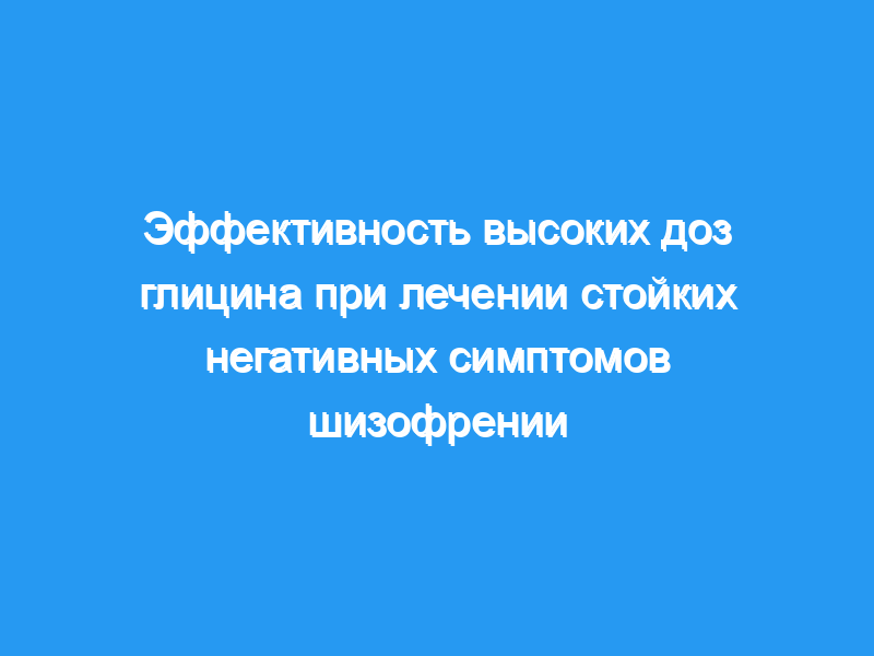 Нарушения глутаматергической нейротрансмиссии, опосредуемой рецептором N-метил-D-аспартата (NMDA), могут играть важную роль в патофизиологии негативных симптомов шизофрении. Глицин, небольшая несущественная аминокислота, функционирует как обязательный коагонист NMDA-рецепторов благодаря своему действию на нечувствительный к стрихнину сайт связывания комплекса NMDA-рецепторов. Таким образом, индуцируемое глицином усиление нейротрансмиссии, опосредованной рецептором NMDA, может предложить потенциально безопасный и осуществимый подход к облегчению стойких негативных симптомов шизофрении. Двадцать два резистентных к лечению пациента с шизофренией приняли участие в двойном слепом плацебо-контролируемом 6-недельном перекрестном исследовании с добавлением глицина в дозе 0,8 г/кг в день к их текущим антипсихотическим препаратам. Клинические оценки, включая Краткую шкалу психиатрической оценки (BPRS), шкалу положительных и отрицательных синдромов (PANSS), шкалу Симпсона-Ангуса для экстрапирамидных симптомов и Шкалу аномальных непроизвольных движений, проводились раз в две недели на протяжении всего исследования. Контролировали клинические лабораторные показатели и уровень аминокислот в сыворотке крови.