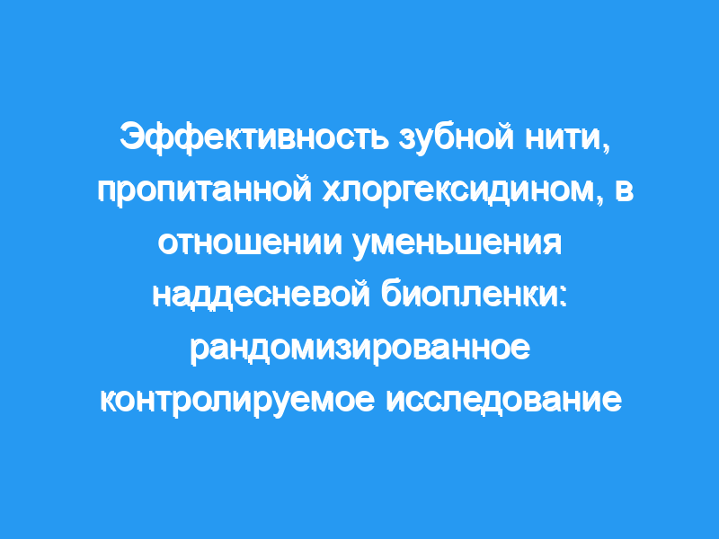 Целью данного исследования было изучение эффективности зубной нити, пропитанной 5% хлоргексидина глюконата, в отношении уменьшения наддесневой биопленки.