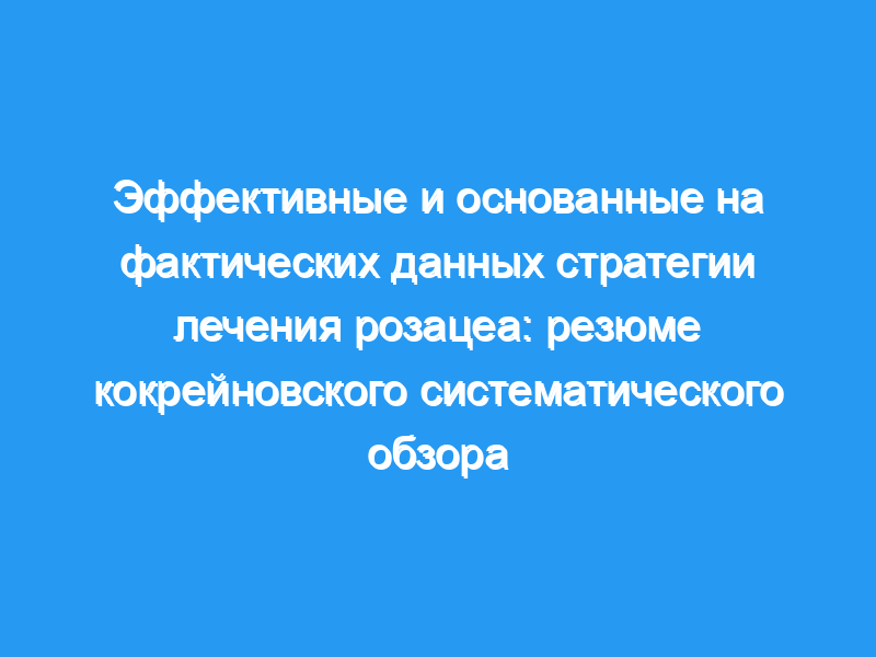 Целью данного обзора была оценка доказательств эффективности и безопасности лечение розацеа.