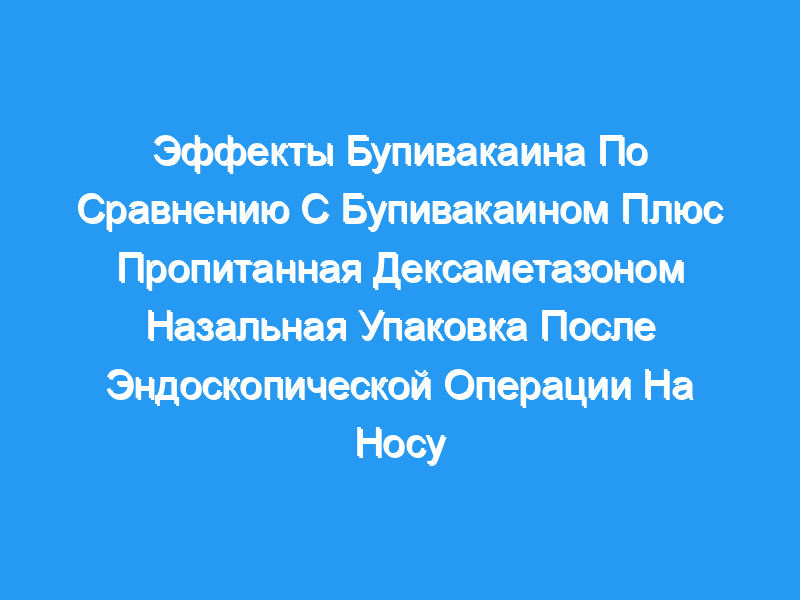 Шестьдесят пациентов I и II групп Американского общества анестезиологов в возрасте от 18 до 65 лет, которым была назначена эндоскопическая операция на носу, были разделены на 2 группы. Группа B получала 8 мл 0,5% бупивакаина и 2 мл физиологического раствора, а группа BD получала 8 мл 0,5% бупивакаина и 8 мг (2 мл) пропитанной дексаметазоном назальной упаковки. В послеоперационном периоде вводили 1000 мг парацетамола и повторяли каждые 6 часов. Были зарегистрированы показатели послеоперационной боли, потребности в дополнительном обезболивании и тошнота-рвота.