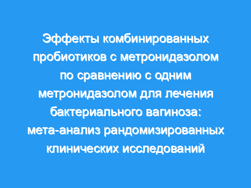 Результат показал в целом незначительную значимость эффективности комбинированных пробиотиков с метронидазолом по сравнению с одним метронидазолом для лечения БВ. Нам нужны дополнительные исследования, чтобы предоставить достаточно доказательств, подтверждающих преимущества пробиотиков при лечении БВ.