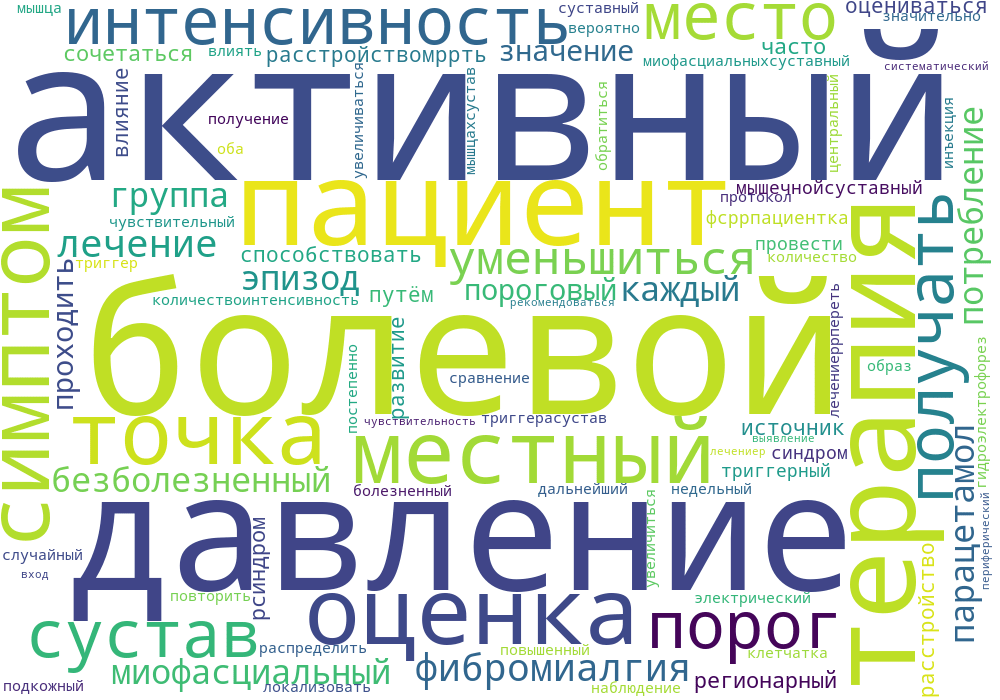 При 3-недельном наблюдении боль FS все еще была ниже, чем у пациентов, не проходивших дальнейшую терапию, и уменьшилась в те, кто проходит активную терапию с 8-го дня (p<,0,0001). Локализованные боли в мышцах/суставах значительно влияют на ФС, вероятно, из-за повышенной центральной чувствительности к периферическому входу, при фибромиалгии рекомендуется их систематическое выявление и лечение.