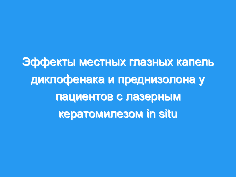 Сравнить эффекты местного нестероидного противовоспалительного средства диклофенака и ацетата преднизолона на заживление ран, послеоперационное воспаление и другие клинические параметры у пациентов с лазерным кератомилезом in situ (LASIK).