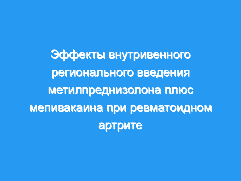 Чтобы оценить субъективный и объективный ответ на внутривенное регионарное введение глюкокортикоидов (IVRAG) при ревматоидном артрите (РА), двадцать пациентов с РА в рандомизированном двойном слепом перекрестном и плацебо-контролируемом исследовании получали либо 50 мг метилпреднизолона в 0,25% растворе мепивакаина, либо мепивакаин (плацебо). в одной руке только с использованием техники Bier-block.