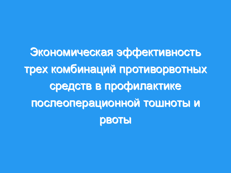 В этом исследовании сравнивается экономическая эффективность трех комбинаций противорвотных средств в профилактике послеоперационной тошноты и рвоты (PONV).