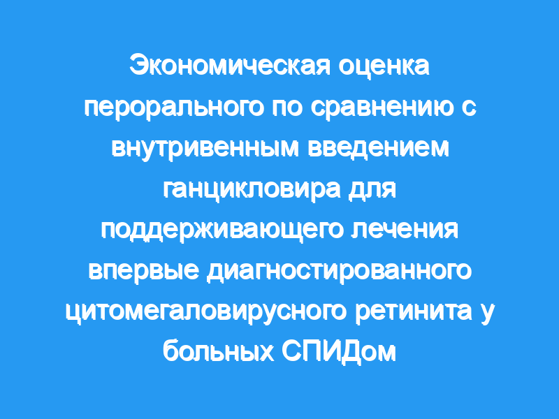 Это проспективное клинико-экономическое исследование было проведено для определения влияния затрат на пероральное введение ганцикловира по сравнению с внутривенным (внутривенным) введением ганцикловира для поддерживающего лечения впервые диагностированного цитомегаловирусного (ЦМВ) ретинита у пациентов с синдромом приобретенного иммунодефицита (СПИД). Данные об эффективности и безопасности были извлечены из исследования oral и i.