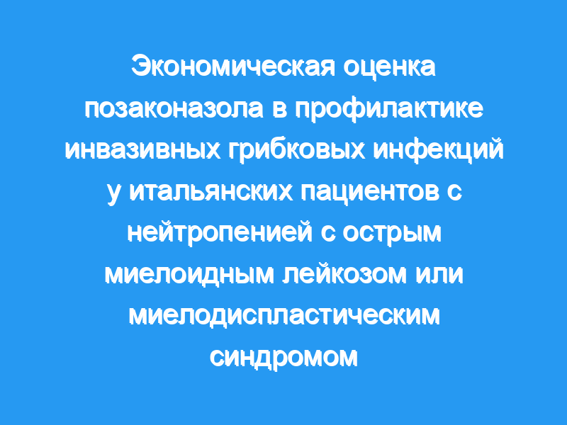 В заключение, позаконазол в качестве профилактики у пациентов с нейтропенией с ОМЛ или МДС, которые подвержены риску ИФИ, является хорошим соотношением цены и качества для итальянских больниц.