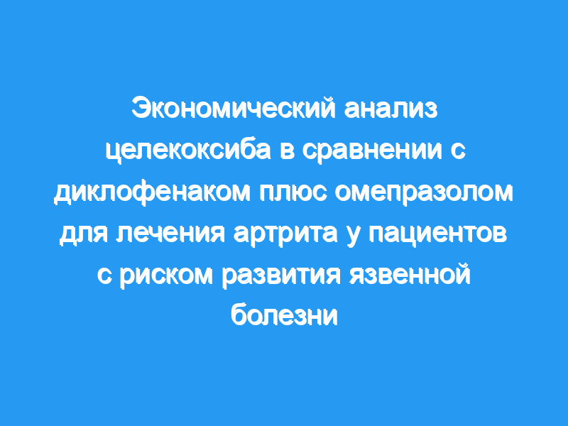 По сравнению с группой, получавшей диклофенак плюс омепразол, средние общие прямые затраты на одного пациента в группе целекоксиба показали значительное снижение на 11%, с 10 915 гонконгских долларов (диапазон 10 915-57 899 гонконгских долларов) до 9714 гонконгских долларов (диапазон 9714-89 770 гонконгских долларов) (P<,0,0001) (1 доллар США = 7,8 гонконгских долларов). Медиана прямых медицинских расходов на рутинное лечение в группе целекоксиба была значительно ниже (11%), чем в группе диклофенака плюс омепразола [10 915 гонконгских долларов (диапазон 10 915-28,048) против 9714 гонконгских долларов (диапазон 6946-26,179 гонконгских долларов) (P<,0,0001)]. У пациентов, у которых наблюдались рецидивы кровотечений, в группе целекоксиба средняя стоимость лечения рецидивирующих кровотечений была значительно выше, чем в группе диклофенака плюс омепразола [8466 гонконгских долларов (диапазон 572-29,851) против 23 210 гонконгских долларов (диапазон 12 318-65 823 гонконгских долларов)] (Р=0,036).