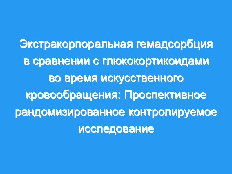 Глюкокортикоиды использовались во время операций на открытом сердце для облегчения системного воспаления после КПБ. Мы сравнили интраоперационную гемадсорбцию и метилпреднизолон с обычной осторожностью во время сложных кардиохирургических операций на CPB по воспалительным реакциям, гемодинамике и периоперационному течению.
