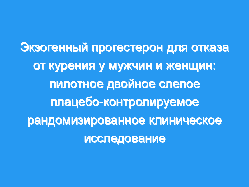 Предпосылки и цели: В некоторых клинических исследованиях было обнаружено, что мужчины и женщины различаются в своей способности бросить курить, возможно, в результате действия прогестерона. Основной целью этого исследования было обеспечить предварительный тест на то, был ли прогестерон (PRO) по сравнению с плацебо (PBO) более эффективным для прекращения курения у мужчин и женщин. Дизайн: Пилотное двойное слепое плацебо-контролируемое рандомизированное клиническое исследование.