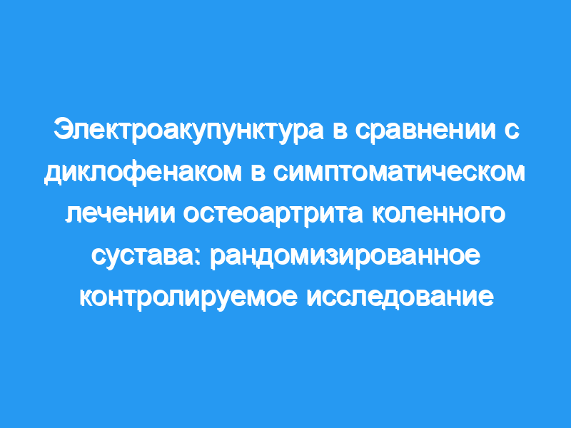 Целью данного исследования было сравнение эффективности электроакупунктуры (ЭА), диклофенака и их комбинации при симптоматическом лечении остеоартрита (ОА) коленного сустава.