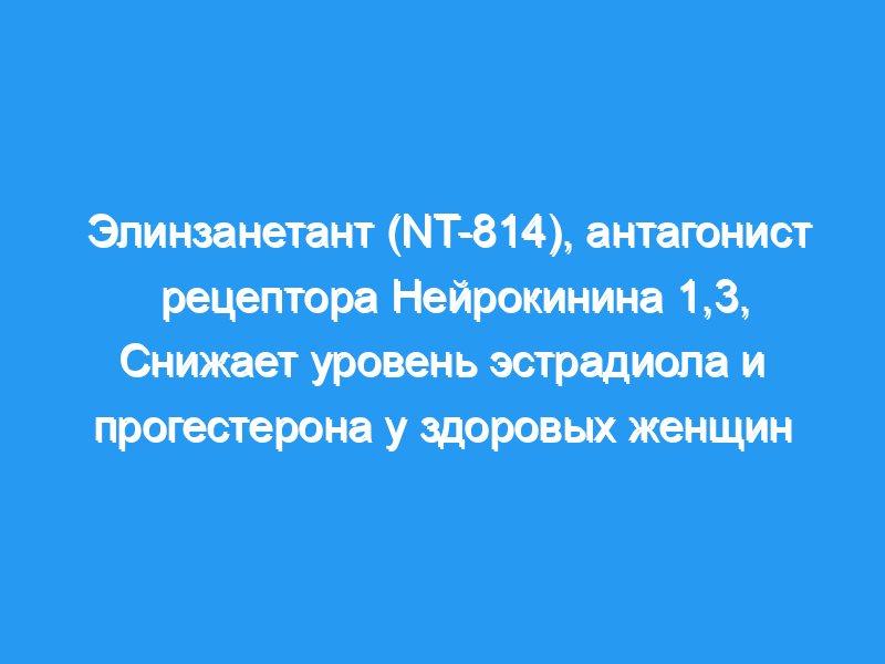 Целью данной работы была оценка влияния нового антагониста NK1,3 элинзанетанта на репродуктивную функцию. уровень гормонов у здоровых женщин.