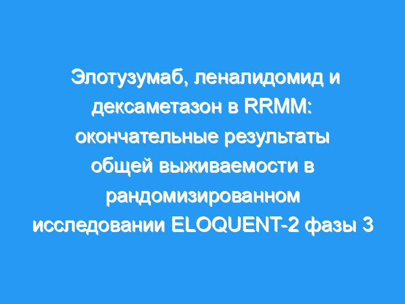 Продление общей выживаемости (OS) остается неудовлетворенной потребностью при рецидивирующей или рефрактерной множественной миеломе (RRMM). В исследовании ELOQUENT-2 (NCT01239797) элотузумаб плюс леналидомид/дексаметазон (ERd) значительно улучшили выживаемость без прогрессирования (PFS) по сравнению с леналидомидом/дексаметазоном (Rd) у пациентов с RRMM и 1-3 предшествующими линиями терапии (LoTs). Мы сообщаем о результатах предварительно запланированного окончательного анализа ОС после минимального периода наблюдения в 70,6 месяцев, что является самым длительным периодом для триплета на основе антител в RRMM. В целом, 646 пациентов с RRMM и 1-3 предшествующими сериями были рандомизированы 1:1 для ERd или R.