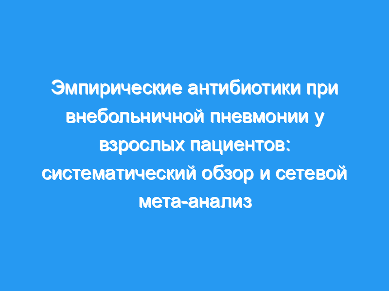 Основная цель этого сетевого мета-анализа — определить эмпирический антибиотик (Em-ATB) с наибольшей вероятностью быть лучшим (HPBB) с точки зрения (1) частоты излечения и (2) смертности у госпитализированных пациентов с внебольничной пневмонией (CAP). Метод: Критерии включения: (1) взрослые пациенты (старше 16 лет) с диагнозом CAP, требующим госпитализации, (2) рандомизированные по крайней мере в два разных Em-ATB, (3) которые сообщают о частоте излечения и (4) написаны на английском или испанском языках. Критерии исключения: (1) неоднозначный протокол приема антибиотиков и (2) опубликованный исключительно в формате реферата или письма. Источники данных: Medline, Embase, Cochrane и citation reviews за период с 1 января 2000 года по 31 декабря 2018 года. Риск предвзятости: инструмент Кокрейна. Качество систематического обзора (SR): Инструмент измерения для оценки систематических обзоров-2. Достоверность фактических данных: Оценка, разработка и оценка рекомендаций. Статистический анализ: частотный метод, выполняемый с помощью библиотеки netmeta, пакет R.