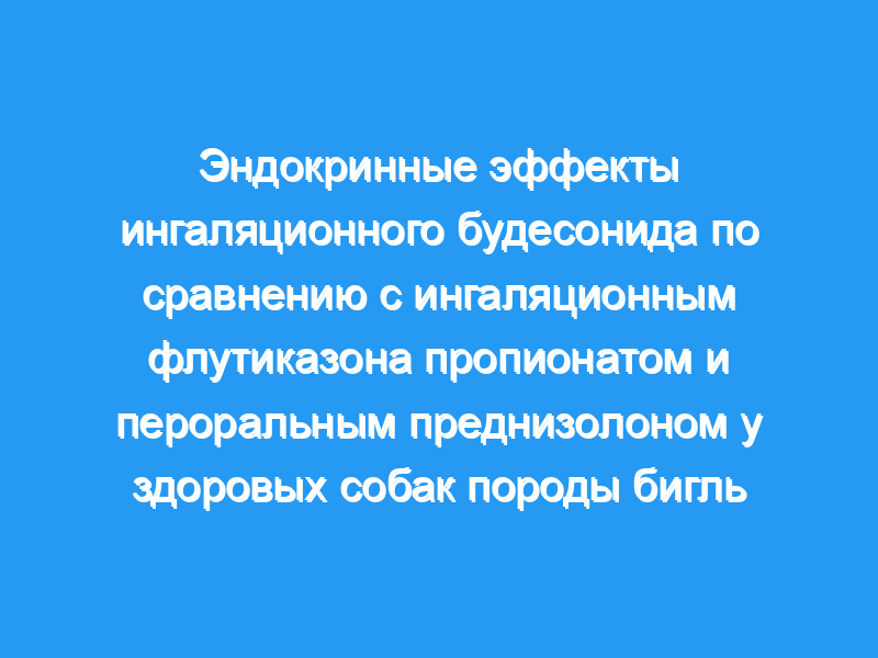 Для сравнения системных эффектов ингаляционных и пероральных кортикостероидов было проведено проспективное рандомизированное плацебо-контролируемое перекрестное исследование.Шесть здоровых кастрированных самок собак породы бигль были случайным образом распределены на четыре группы лечения: (1) ингаляция будесонида (200 мкг два раза в день), (2) ингаляция флутиказона (250 мкг два раза в день), (3) пероральный прием преднизолона (1 мг/кг один раз в день) и (4) ингаляция плацебо (комнатный воздух два раза в день). Каждое лечение и период вымывания длились 4 недели.