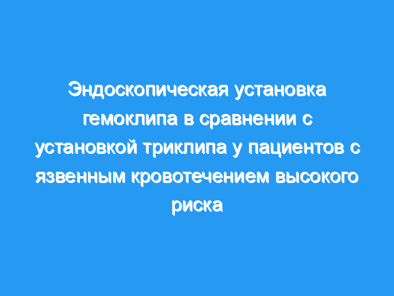 Hemoclip превосходит triclip в обеспечении первичного гемостаза у пациентов с язвенным кровотечением высокого риска. При кровотечениях, расположенных в труднодоступных местах, гемоклип более идеален, чем триклип.