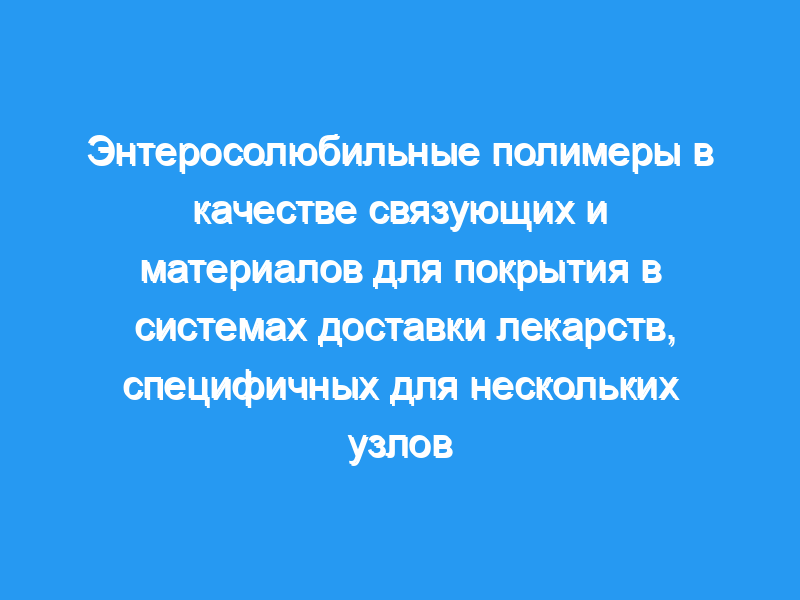 В качестве энтеросолюбильного полимера использовали сополимеры метакрилата, сукцинаты гидроксипропилметилцеллюлозы ацетата и фталат ацетата целлюлозы.