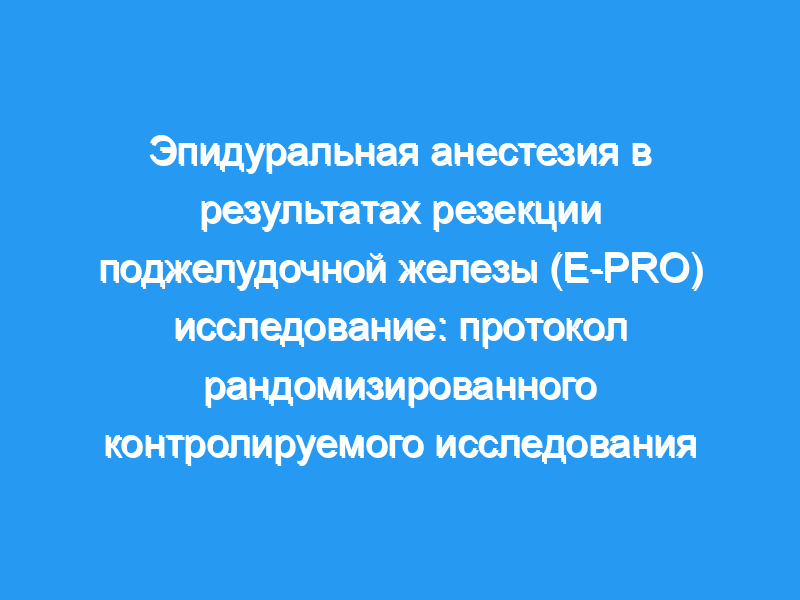 Исследование «Эпидуральная анестезия в исходах резекции поджелудочной железы» (E-PRO) является проспективным одноцентровым рандомизированным контролируемым исследованием. 150 пациентов, перенесших панкреатодуоденэктомию или дистальную панкреатэктомию, будут рандомизированы для получения эпидуральной инфузии бупивакаина после введения анестезии с последующей продолжающейся эпидуральной инфузией бупивакаина в послеоперационном периоде в дополнение к институциональному стандартизированному режиму обезболивания, включающему контролируемую пациентом анальгезию гидроморфоном (PCA), ацетаминофен и кеторолак (группа вмешательства) или без эпидуральной инфузии и только стандартизированную режим послеоперационного обезболивания (контрольная группа). Первичным результатом было послеоперационное потребление опиоидов, измеряемое в морфине или эквивалентах морфина. Вторичные исходы включают числовые оценки послеоперационной боли, о которых сообщил пациент, тенденцию и относительные соотношения сывороточных маркеров воспаления (интерлейкин (IL)-1β, IL-6, фактор некроза опухоли-α, IL-10), возникновение послеоперационного делирия, развитие PPSP, определяемого количественным сенсорным тестированием, и заболевание-свободное и общее выживание. Этика и распространение: Испытание E-PRO было одобрено институциональным наблюдательным советом. Набор начался в мае 2016 года и продлится до конца мая 2018 года. Планы распространения включают презентации на научных конференциях и научные публикации. Регистрационный номер пробной версии: NCT02681796.