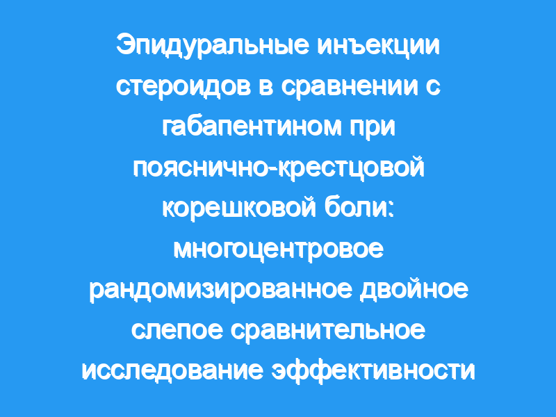 Хотя эпидуральная инъекция стероидов может принести большую пользу, чем габапентин, для некоторых показателей исхода, различия незначительны и являются временными для большинства людей.Пробная регистрация ClinicalTrials.gov Идентификатор: NCT01495923.