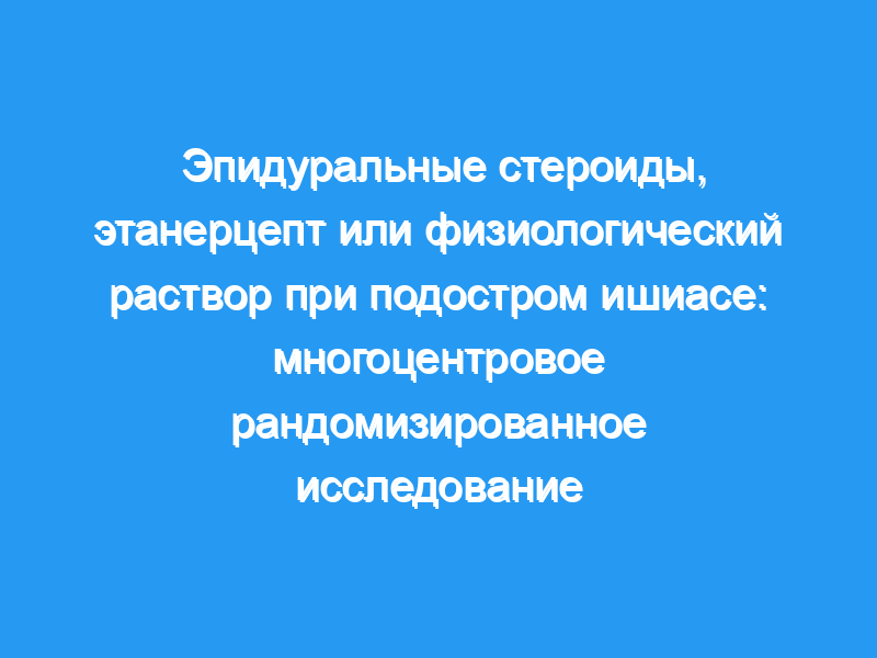 Оценить, улучшают ли эпидуральные стероиды, этанерцепт или физиологический раствор боль и функцию у взрослых с пояснично-крестцовой радикулопатией. Дизайн: Многоцентровое, 3-групповое, рандомизированное, плацебо-контролируемое исследование, проводившееся с 2008 по 2011 год. Рандомизация была произведена с помощью компьютера и стратифицирована по участкам. Фармацевты приготовили шприцы. Пациенты, лечащие врачи и медсестры, оценивающие результаты, были слепы к назначению лечения. (ClinicalTrials.gov регистрационный номер: NCT00733096)