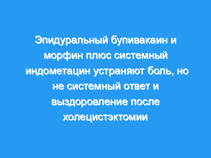 Мы изучили 24 пациента, перенесших плановую холецистэктомию, и были рандомизированы либо на традиционное послеоперационное обезболивающее лечение с прерывистым введением никоморфина (10-15 мг) и ацетаминофена (1 г) по запросу, либо на торакальную эпидуральную анальгезию простым бупивакаином в течение 48 часов и эпидуральным морфином по 4 мг каждые 8 часов в течение 96 часов плюс системная индометацин по 100 мг каждые 8 часов в течение 96 часов.