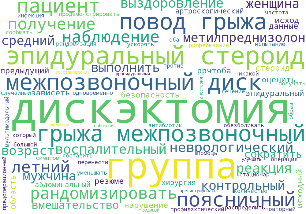 Пребывание в стационаре было сокращено с 8 до 6 дней (Р = 0,0001), а количество пациентов с неврологическими симптомами было сокращено больше (70% против 44%, Р = 0,0004) с помощью эпидурального стероида. Частота повторных операций через 1 год составила 6% в обеих группах, 8% в контрольной группе и 7% в группе вмешательства через 2 года. Никаких инфекций зарегистрировано не было.