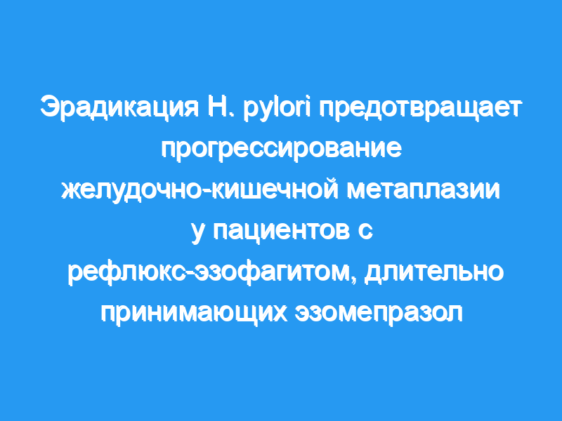 Целью данного исследования было определить, ограничивает ли эрадикация Helicobacter pylori прогрессирование предраковых изменений, проявляющихся в виде кишечной метаплазии (ИМ), у пациентов с рефлюкс-эзофагитом, получающих длительный прием эзомепразола.