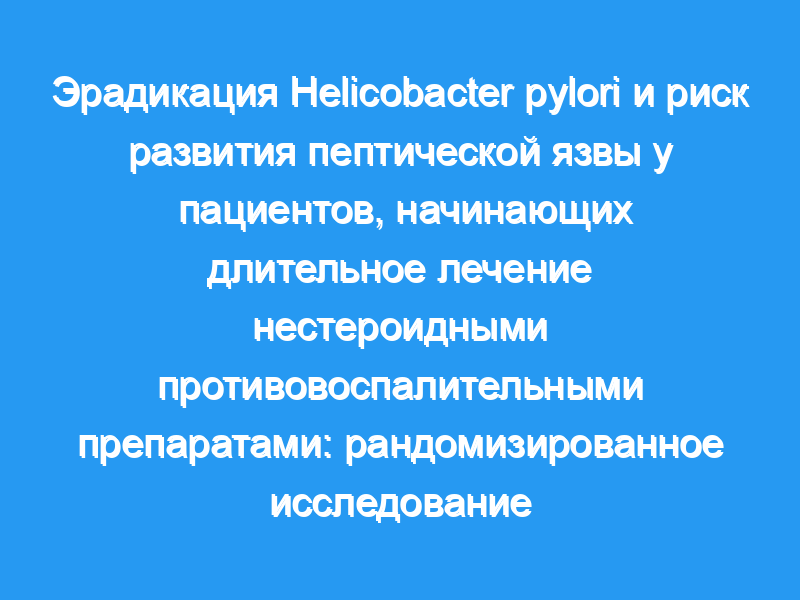 Вопрос о том, увеличивает ли Helicobacter pylori риск развития язв у пациентов, принимающих нестероидные противовоспалительные препараты (НПВП), является спорным. Мы предположили, что эрадикация инфекции H. pylori снизит риск развития язв у пациентов, начинающих длительное лечение НПВП.