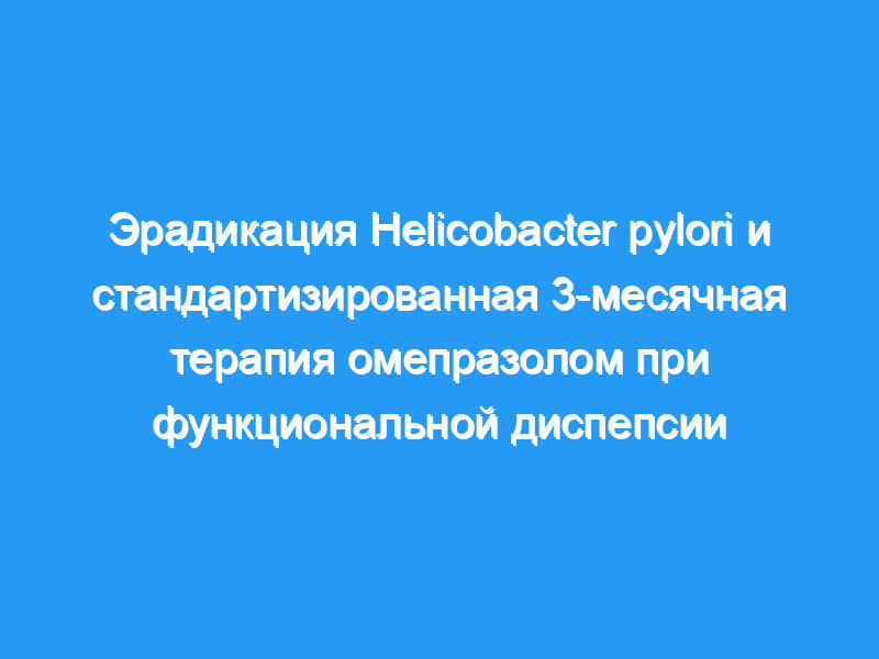 Роль Helicobacter pylori в функциональной диспепсии остается неясной. В этом исследовании оценивались долгосрочные последствия для симптомов и качества жизни у пациентов с H. pylori-позитивной функциональной диспепсией после эрадикационной терапии H. pylori со стандартизированным 3-месячным лечением омепразолом.