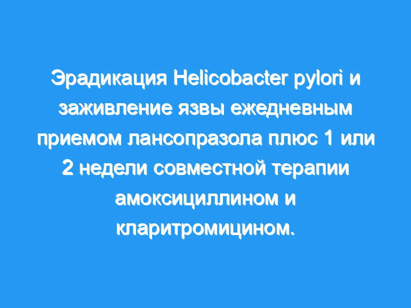 Здоровые взрослые пациенты с эндоскопически подтвержденной язвенной болезнью двенадцатиперстной кишки, ассоциированной с H. pylori (3 мм и более, язва и более, 20 мм), имели право на участие в исследовании. Все пациенты получали 14-дневный курс лансопразола в дозе 30 мг внутримышечно и были рандомизированы для получения 7 или 14 дней амоксициллина по 1 г в день и кларитромицина в дозе 500 мг в день. Пациенты были эндоскопированы при поступлении и через 14-17 дней. Пациенты с симптомами, не получавшие лечения, получали еще 14 дней терапии лансопразолом в дозе 30 мг внутримышечно. Эрадикация была подтверждена минимум через 28 дней после прекращения всей терапии с помощью уреазной реакции и гистологической оценки биопсий тела желудка и антрального отдела (по три биопсии в каждом месте).