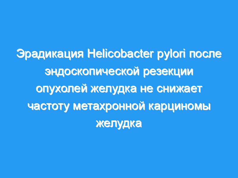 В этом проспективном исследовании эрадикация H. pylori после эндоскопической резекции опухолей желудка. не привело к значительному снижению частоты метахронной карциномы желудка. ClinicalTrials.gov Номер: NCT01510730.