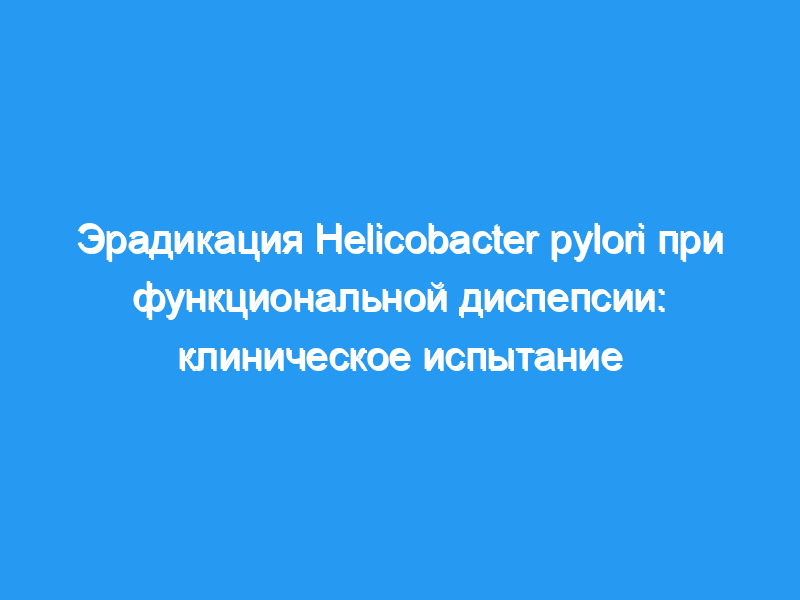 Эрадикация Helicobacter pylori обеспечила значительные преимущества для пациентов первичной медико-санитарной помощи с функциональной диспепсией. Пробная регистрация: clinicaltrials.gov Идентификатор: NCT00404534.