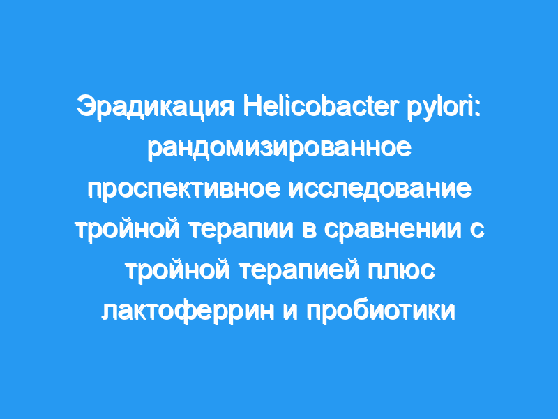 Helicobacter pylori причинно связан с гастритом и язвенной болезнью. Недавние данные (мета-анализ) показали, что тройная терапия амоксициллином, кларитромицином и ингибитором протонной помпы приводит к эрадикации только 74-76%, и могут потребоваться новые терапевтические протоколы. Целью этого исследования было изучить, может ли добавление бычьего лактоферрина (bLf) и пробиотиков (Pbs) к стандартной тройной терапии инфекции H. pylori улучшить скорость эрадикации и уменьшить побочные эффекты.