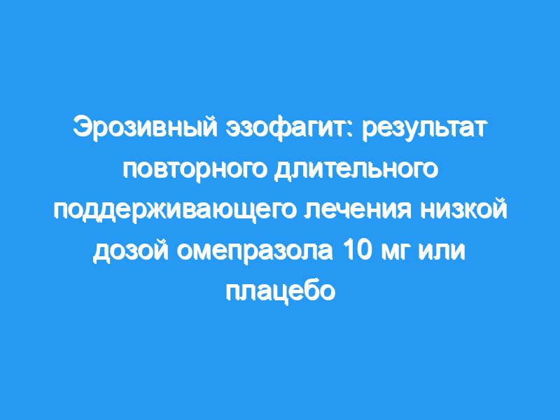 Изучить эффективность ежедневного поддерживающего лечения омепразолом в дозе 10 мг в снижении частоты рецидивов зажившего эрозивного эзофагита.