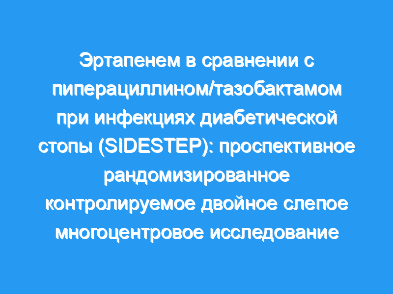 Инфекции диабетической стопы являются распространенной и серьезной проблемой, однако в немногих рандомизированных исследованиях надлежащего качества сравнивалась эффективность различных схем антибиотикотерапии, доступных для их лечения. Наша цель состояла в том, чтобы оценить эффективность и безопасность эртапенема по сравнению с пиперациллином/тазобактамом при инфекциях стоп.