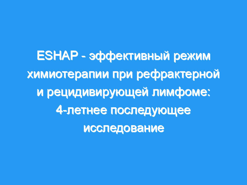Было установлено, что ESHAP является активным, переносимым режимом химиотерапии при рецидивирующей и рефрактерной лимфоме. Применение прогностической модели, основанной на опухолевой нагрузке и уровне ЛДГ в сыворотке крови, показывает значительные различия в выживаемости в этой популяции пациентов.
