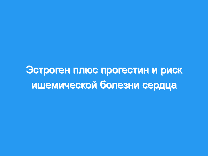 Недавние рандомизированные клинические испытания показали, что эстроген в сочетании с прогестином не обеспечивают защиты сердца и могут увеличить риск ишемической болезни сердца (ИБС). В этом отчете мы приводим окончательные результаты в отношении эстрогена плюс прогестина и ИБС, полученные в рамках Инициативы по охране здоровья женщин (WHI).