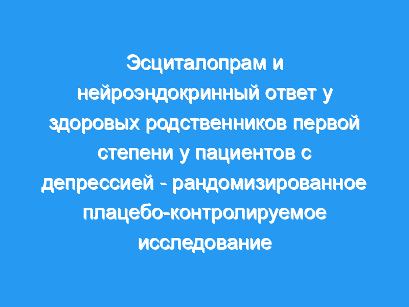 Настоящее исследование не подтверждает влияние эсциталопрама в дозе 10 мг в день по сравнению с плацебо на ось HPA у здоровых родственников первой степени у пациентов с МДД. Повышение уровня эсциталопрама имело тенденцию к снижению HPA-ответа в тесте DEX-CRH, и этот эффект усиливался с возрастом. Пробная регистрация: ClinicalTrials.gov NCT00386841.