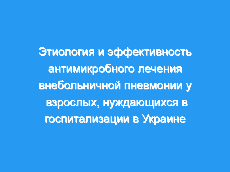 Предпосылки и цель: Эмпирическая терапия внебольничной пневмонии (ВП) остается стандартным методом лечения, а рекомендации в основном основаны на опубликованных данных из Соединенных Штатов или Европы. В этом исследовании мы определили бактериальную этиологию ВП и оценили клинические исходы при антимикробном лечении ВП в Украине.