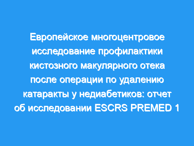 Авторы исследования: Laura H P Wielders, Jan S A G Schouten, Bjorn Winkens, Frank J H M van den Biggelaar, Claudette A Veldhuizen, Oliver Findl, Joaquim C N Murta, Willem R O Goslings, Marie-José Tassignon, Maurits V Joosse, Ype P Henry, Alexa